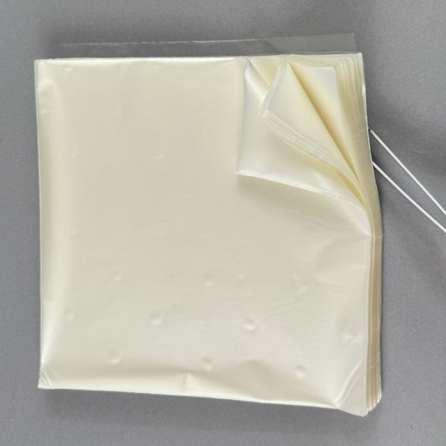 Add clean, professional edge finishing and temporary support to your embroidery with Amann Aqua Top Specialty Toppings. A water soluble topping that prevents intricate parts of a design from sinking into the pile of fabrics, such as terrycloth towels and fleece. Aqua Top dissolves with water or steam. These 7-inch square topping sheets give you a crisp, smooth surface for stitches to sit on without sinking into the fabric—ideal for low-nap, textured, or fuzzy fabrics. Amann Aqua Top is available in a 7 inch by 125 yard continuous roll or in a pack of 250 7 inch x 7 inch square sheets.Â